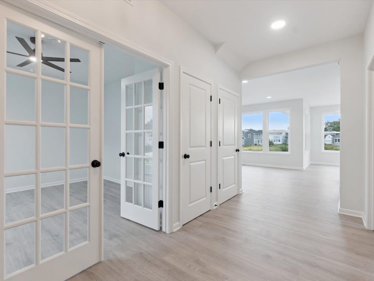 Storage is plentiful, with a walk-in pantry and a generous rear walk-in closet situated next to a drop zone by the entrance to the attached garage.
